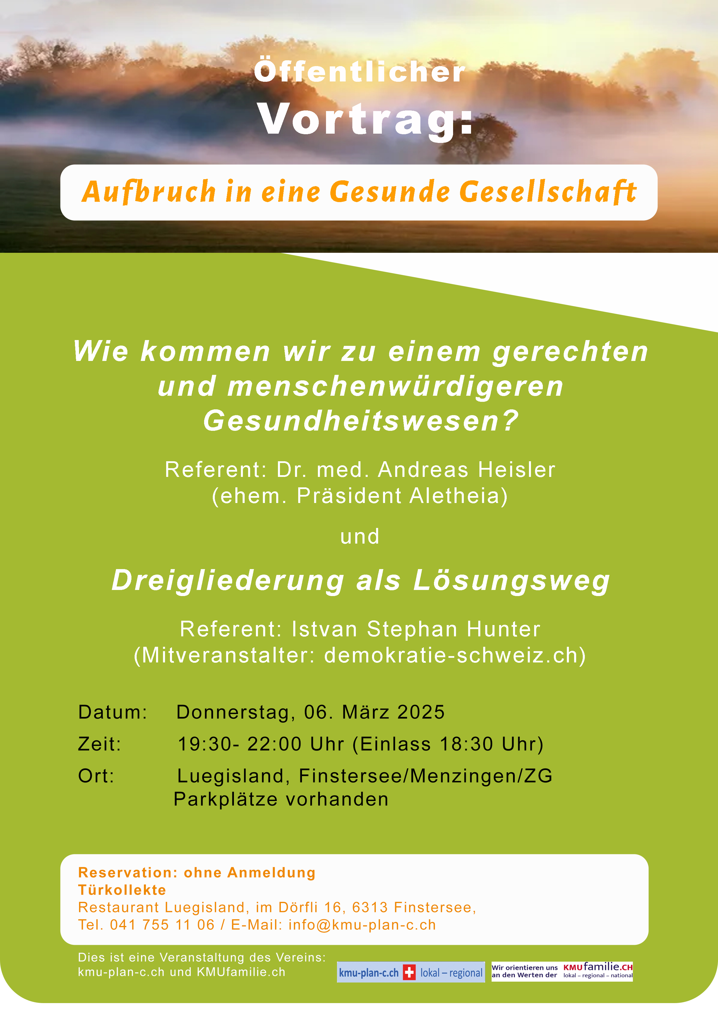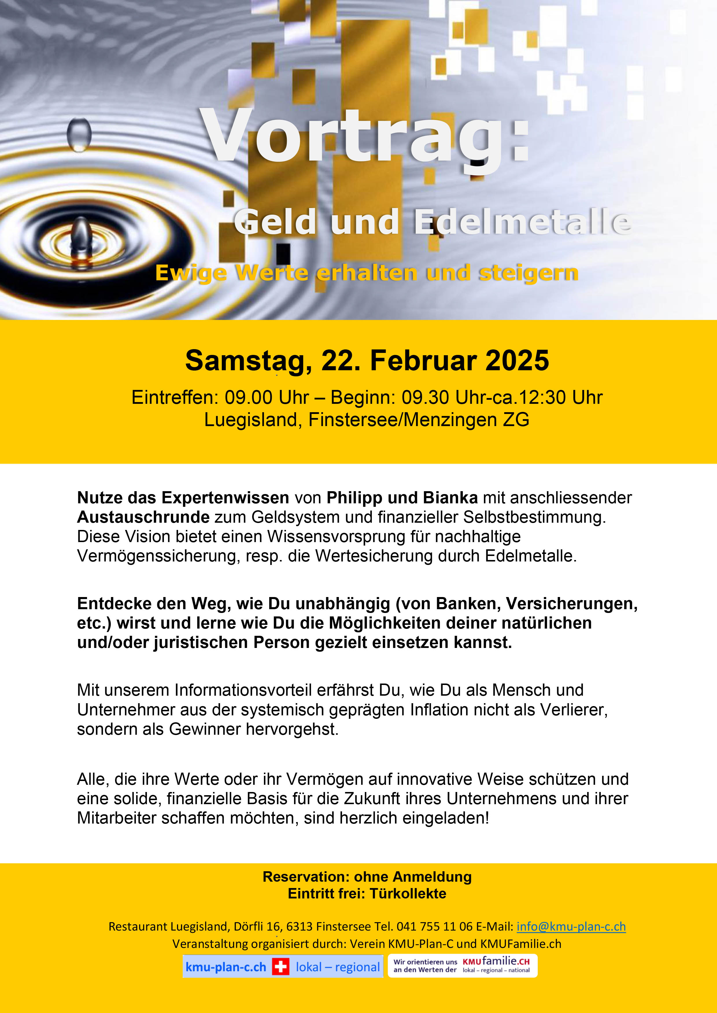 KMU-Plan-C organisiert regelmässig Vorträge für Menschen, Unternehmer und die breite Bevölkerung vor allem zu gesellschafts-politischen Themen.